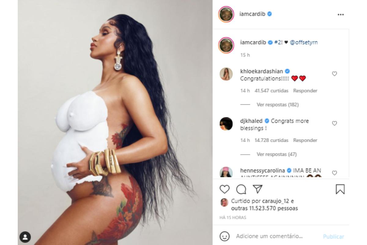 Cardi B é casada com o também rapper Offset – que é pai de Kulture, e da criança que está a caminho. Os fãs celebraram a novidade na publicação do Instagram da rapper, sobre a qual declararam: “Simplesmente linda!” e “Muitas bênçãos!”.