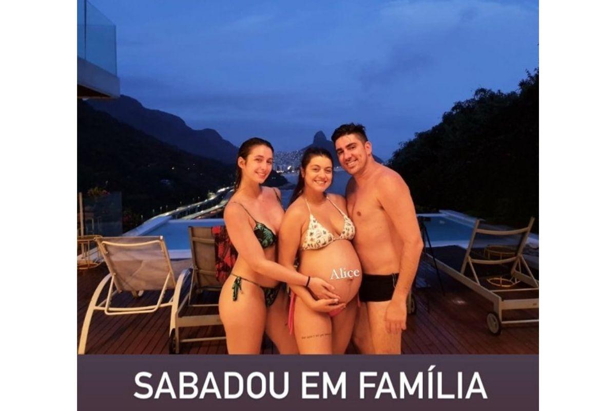 “Sabadou em família”, escreveu Bruna Neves. “Que tarde espetacular com Alice”, postou o ator Franklin Peres, nos posts com a grávida.