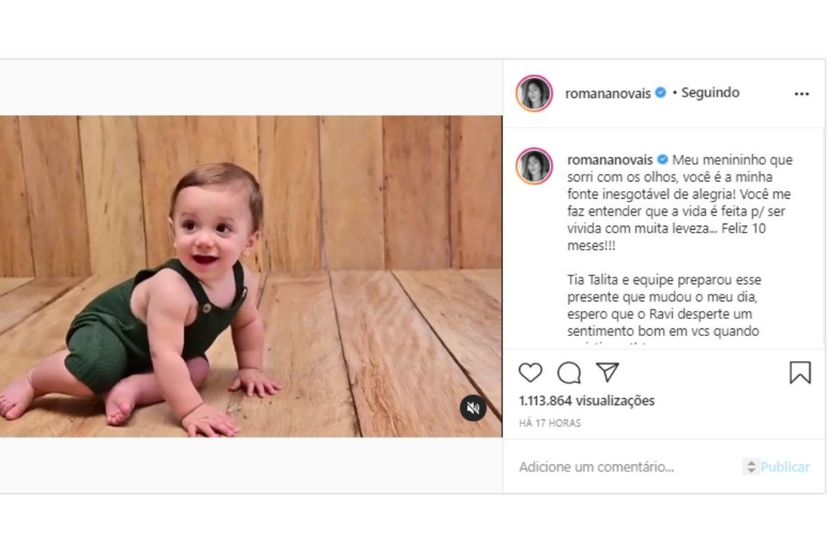 Romana Novais usou as redes sociais na última terça-feira, 10 de novembro, para compartilhar uma homenagem super especial para o filho, Ravi, que completou 10 meses. Na publicação, a famosa mostrou um vídeo com momentos do bebê, além de uma homenagem super especial para o filho. Ravi é fruto do relacionamento de Romana com o DJ Alok.