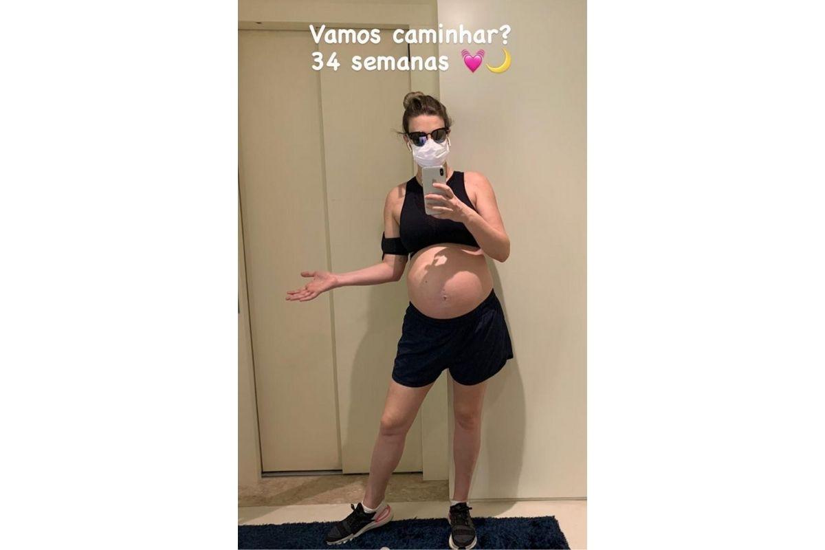 O casal terá uma menina, que se chamará Lua. Na imagem, a escritora aparece de shorts e um top, mostrando a silhueta de gestante. “Vamos caminhar? 34 semanas”, escreveu na legenda.