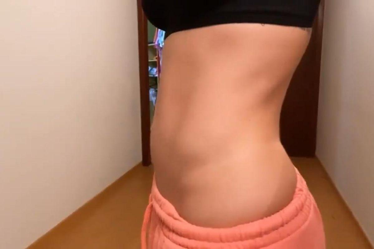 A influencer, está com cerca de cinco semanas de gestação. “Olha a barriga, gente. De frente não dá muito pra perceber que tem neném. De lado já está dando pra dar uma reparada”, disse ela. O casal está junto há apenas 3 meses e anunciaram nas redes sociais a gestação no dia 9 de outubro. Confira a imagem abaixo: