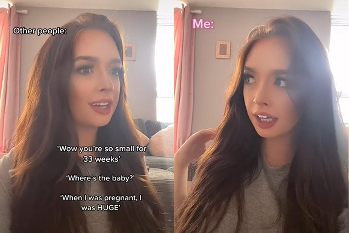 Uma mulher compartilhou um vídeo no TikTok para falar sobre a experiência que teve grávida. Por ter uma barriga pequena, mesmo no terceiro trimestre da gravidez, ela alega que ouviu muitos comentários questionando se tinha certeza que estava grávida.