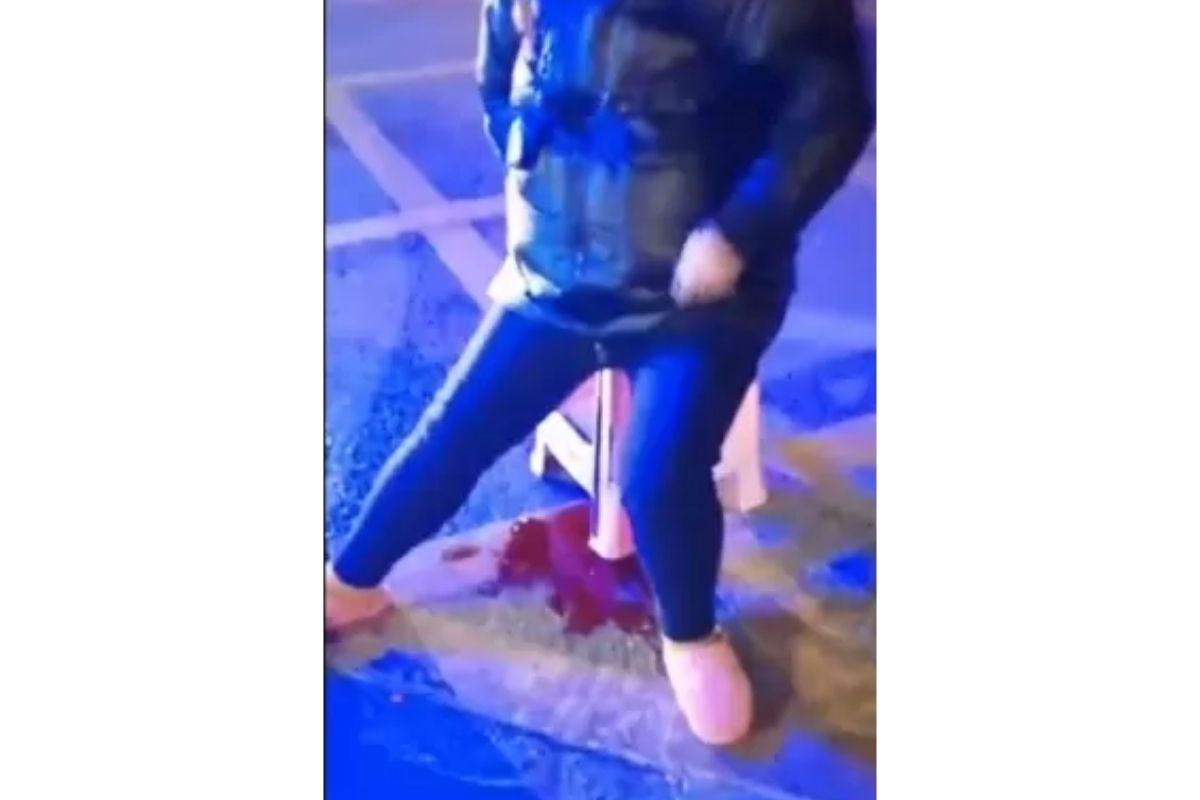 Um vídeo foi registrado por pessoas que estavam próximas a entrada do hospital – e mostra a mulher sentada sob uma poça de sangue na rua. Ela recebeu atendimento médico momentos mais tarde, mas já havia perdido o bebê que estava esperando.
