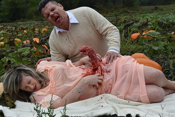 Inspirados pelo filme Alien, o ensaio começou normal. Nicole e Todd Cameron escolheram um campo de abóboras como cenário para a sessão. Mas eles serem surpreendidos pelo nascimento do “bebê” alien durante as fotos!