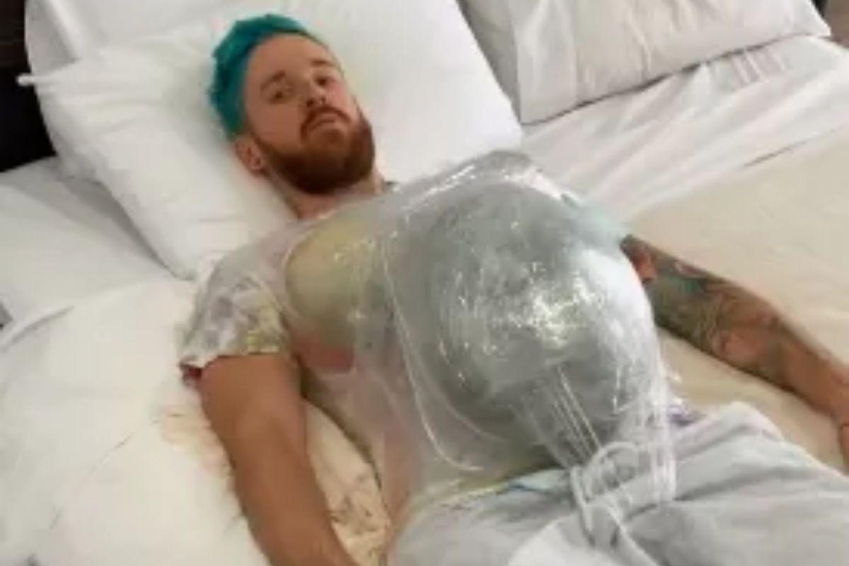 Maitland Hanley queria entender o que a esposa estava sentindo durante a gravidez e com ato de empatia prendeu uma melancia para a barriga e dois melões para simular os peitos com papel filme. Ele gravou vídeos no Tik Tok mostrando a rotina da experiência de estar “grávido”.
