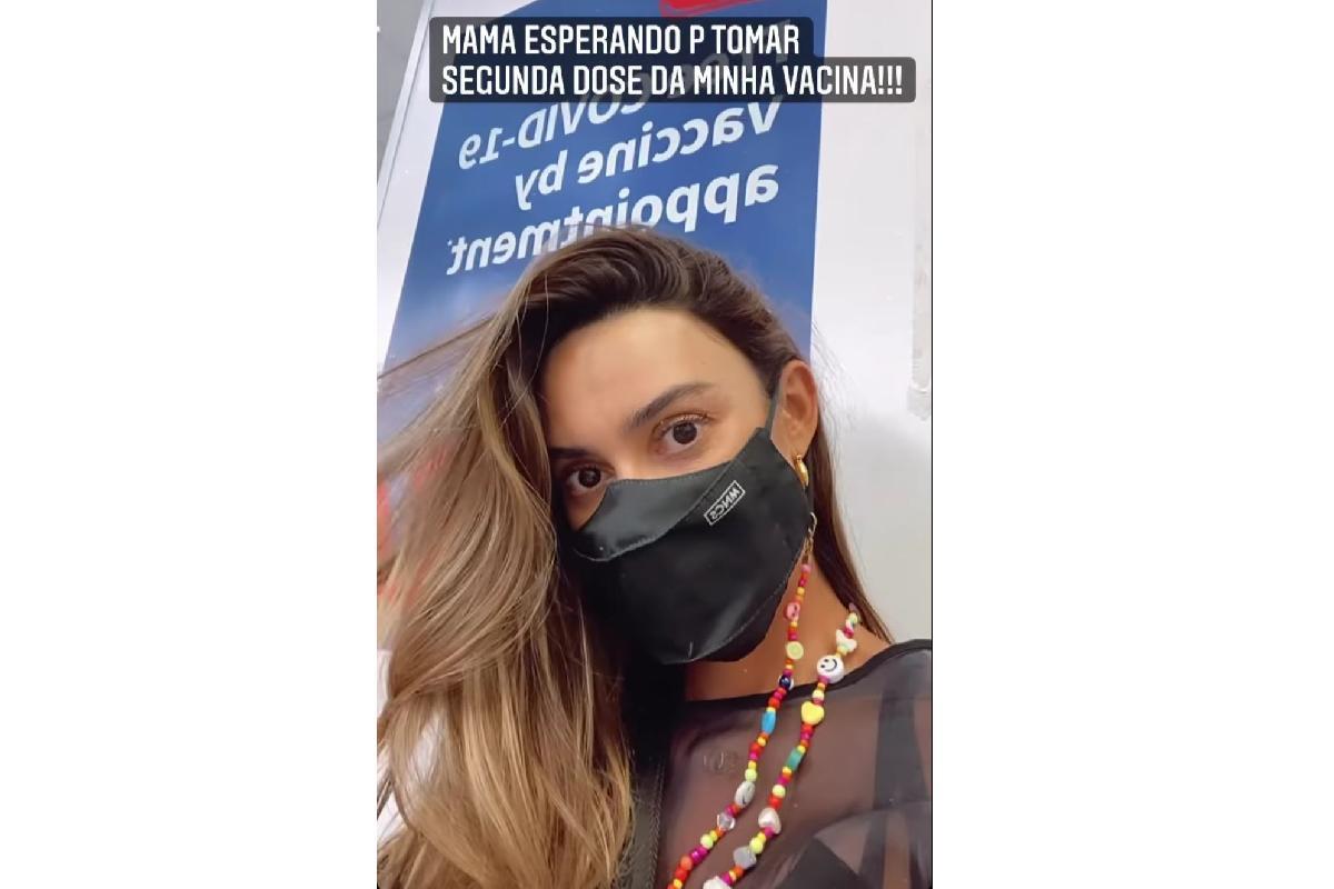 Mais cedo, a grávida mostrou nos stories o momento em que esperava para receber o imunizante. Ansiosa, ela disse: “Esperando para tomar minha segunda dose”, e no vídeo escreveu: “Mama esperando para tomar segunda dose da minha vacina!!!”.