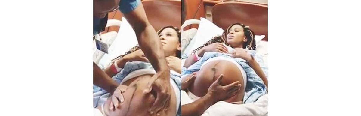 A criança estava com o bumbum para baixo, o que iria impossibilitar um nascimento por parto normal, só que este era o desejo do casal.