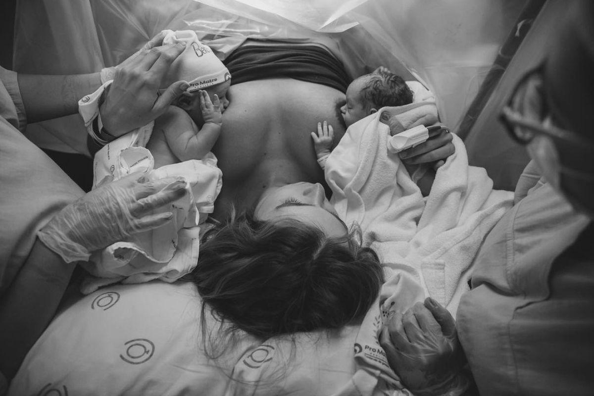 A mãe dos gêmeos contou como foi o primeiro contato com os filhos: “O Bento estava empelicado, mas eu não consegui ver…logo vieram os dois direto para o peito, ficaram um tempão ali comigo”, também disse da emoção que foi ver os bebês sendo apresentados para a família: “Lembro de levarem os bebês para a janelinha que estava toda minha família e amigos ali, essa parte foi bem emocionante”