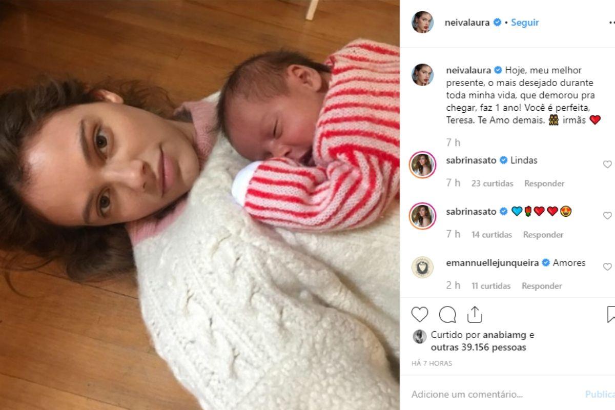 Acontece que Teresa é a irmã mais nova da atriz e ela publicou uma foto de quando a menina ainda era recém-nascida, por isso toda a confusão. Na legenda, Laura comemorou o primeiro aniversário caçula. “Hoje, meu melhor presente, o mais desejado durante toda minha vida, que demorou pra chegar, faz 1 ano! Você é perfeita, Teresa. Te Amo demais”.