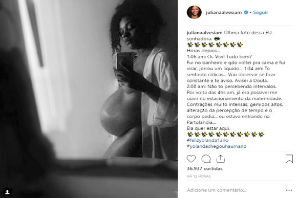 Há um ano atrás Juliana Alves começava a sentir sensações, dores, sentimentos… era Yolanda querendo chegar! E para relembrar o nascimento da filha a atriz postou uma foto da barriga logo antes da filha nascer. A imagem alcançou mais de 36 mil curtidas e mostrou o quanto a maternidade deixou Juliana linda.
