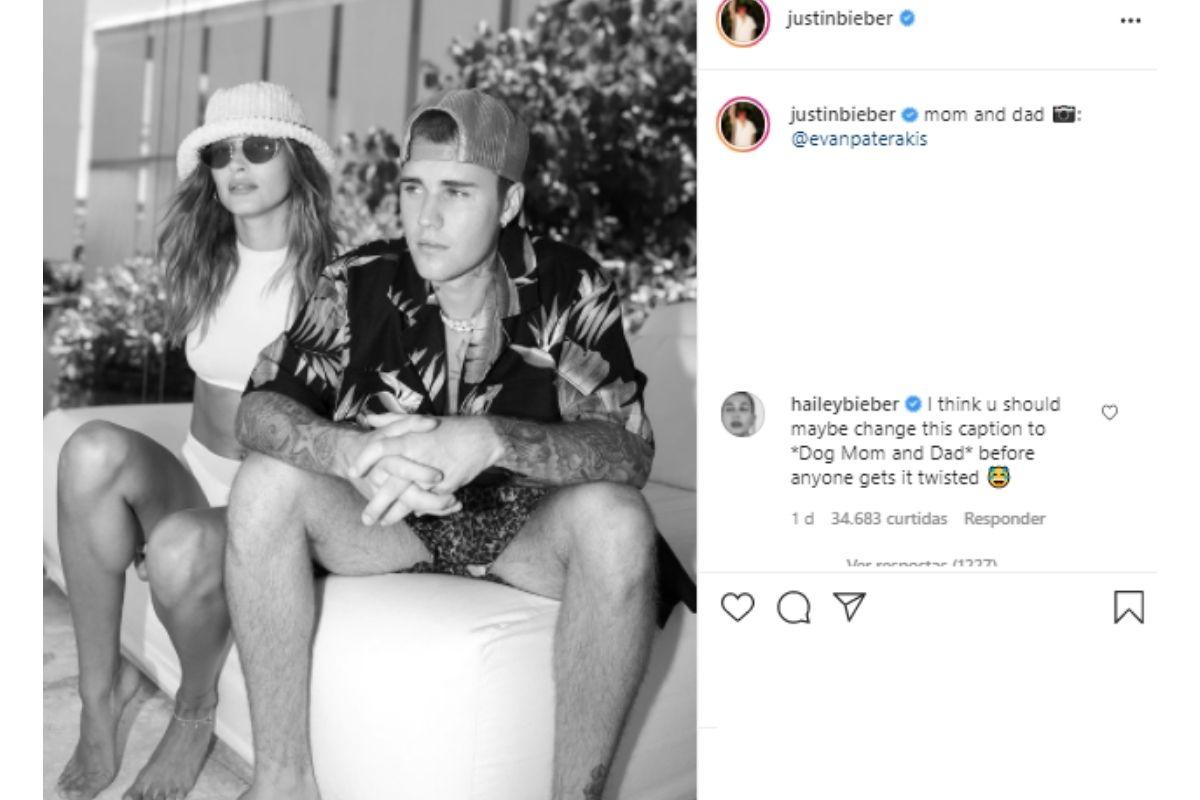 Contudo, a modelo desmentiu nesta terça-feira, 20 de julho, os rumores envolvendo seu nome. “Acho que você deve mudar a legenda para ‘mãe e pai de cachorro’ antes que as coisas se compliquem”, brincou, também nos comentários da foto de Justin.