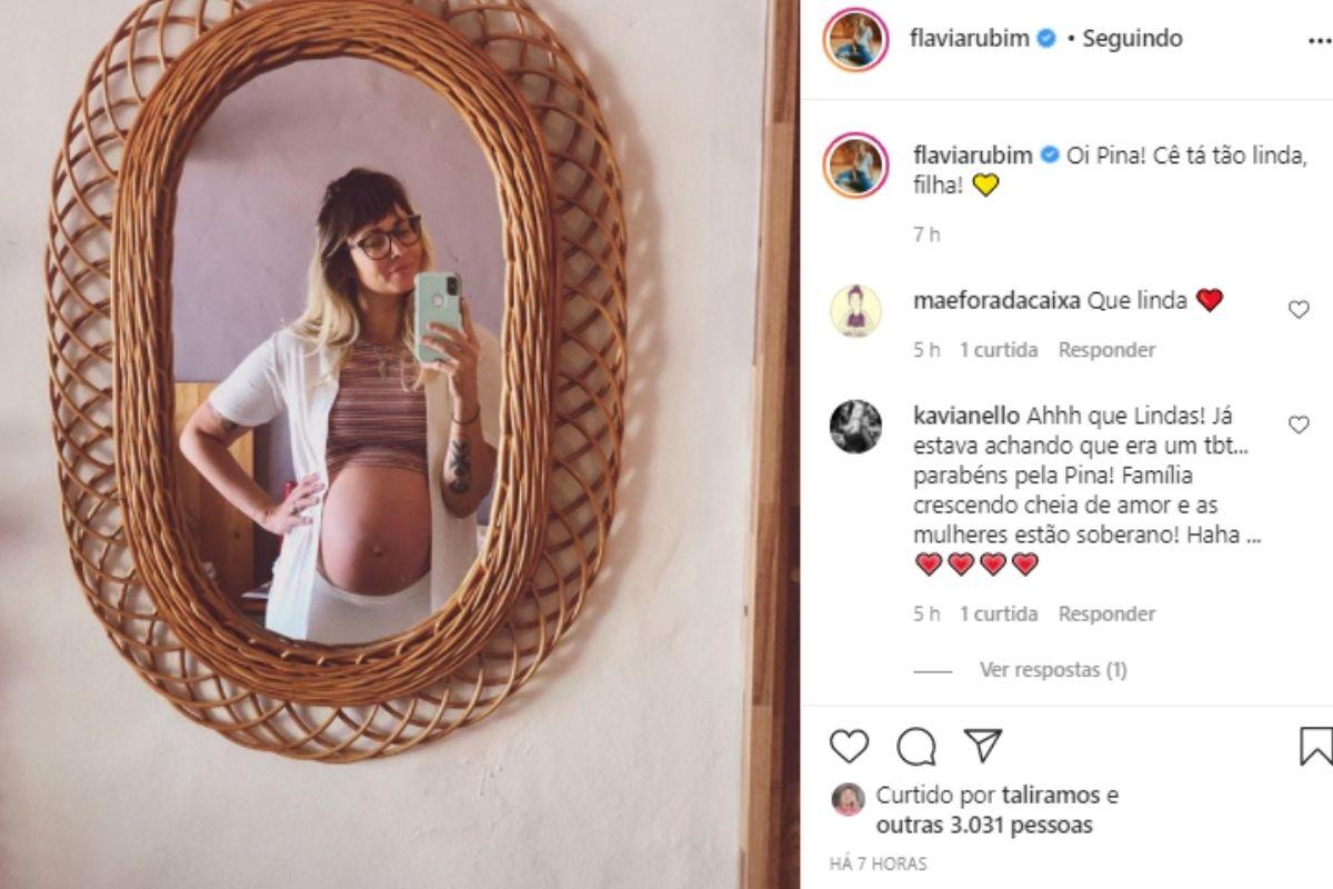 Flávia Rubim, 38 anos, ex-apresentadora da TV Globinho, usou as redes sociais para anunciar que está a espera do 4° filho.  “Oi Pina! Cê tá tão linda, filha!”, escreveu ao publicar uma foto da barriga nas redes sociais, revelando o nome da menina que espera.
