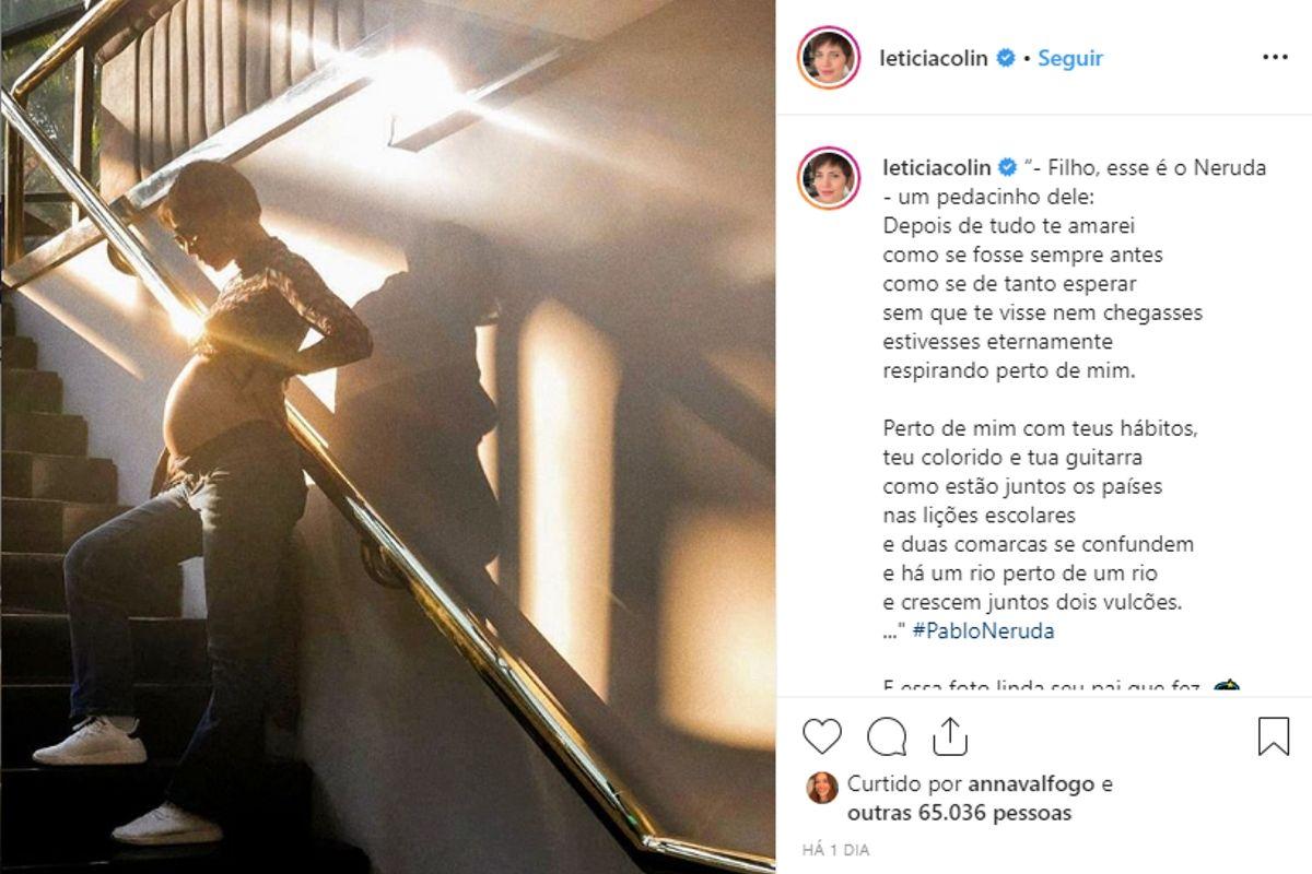 A atriz ainda mostrou que vai fazer com que o filho tenha um contato direto com a poesia, na legenda ela escreve um poema de Pablo Neruda. E avisa ao bebê que ela está mostrando uma parte da arte do poeta. “Filho, esse é o Neruda – um pedacinho dele:
