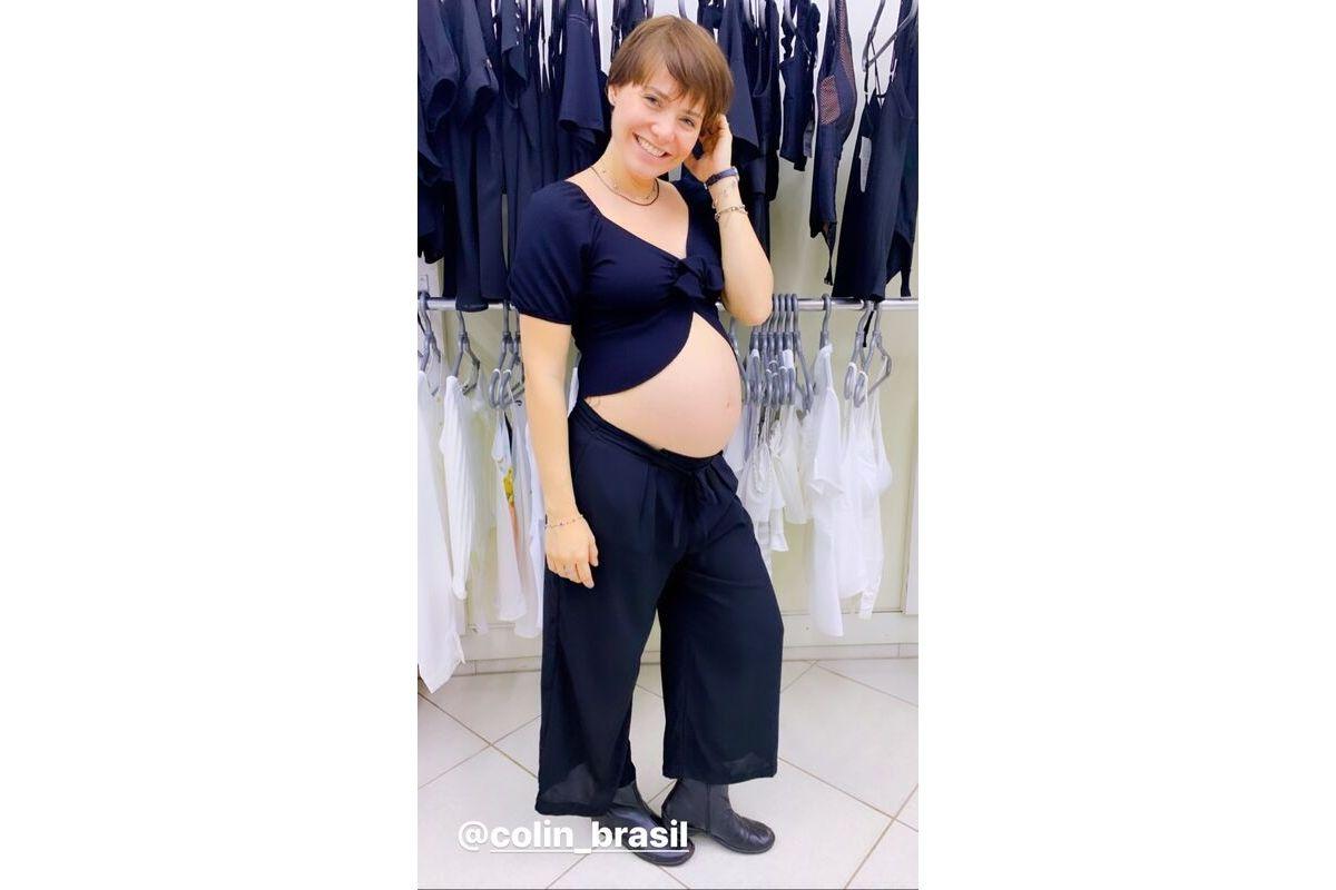 A atriz está à espera do primeiro filho, que se chamará Uri, fruto do relacionamento com o diretor, Michel Melamed. A foto do visual foi feita na loja de roupas do pai de Letícia, a Colin Brasil.