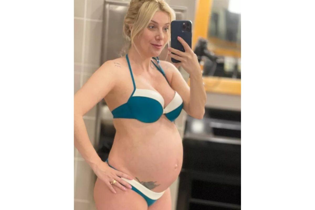 Na imagem compartilhada nas redes sociais, a cantora aparece usando um biquíni azul e posando para uma foto em frente ao espelho, onde é possível ver claramente sua barriga gestante.  “Sete meses e lá vai… Que delícia. Passa tão rápido”, escreveu ela na legenda da publicação.
