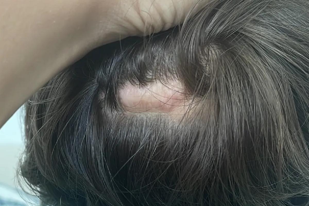 Sequela presente na cabeça de Luca após parto negligenciado (Foto: Reprodução/g1)