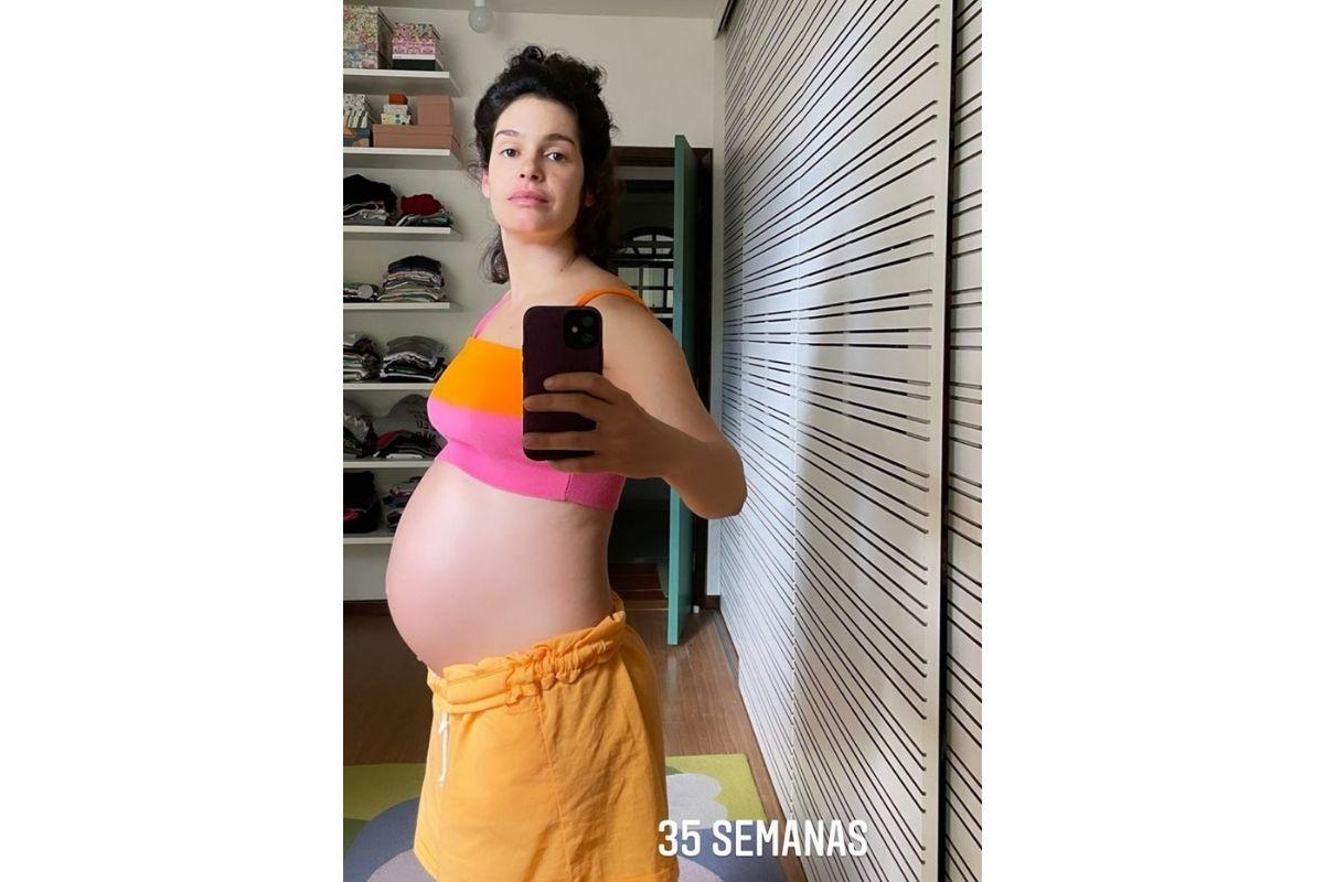 A atriz, Maria Flor, está grávida do primeiro filho e, apesar de não exibir sua vida pessoal, costuma usar as redes sociais para compartilhar o processo da gravidez com os fãs. Neste sábado, 18, ela publicou uma foto nos stories mostrando o barrigão de 35 semanas, que representa 8 meses de gestação.
