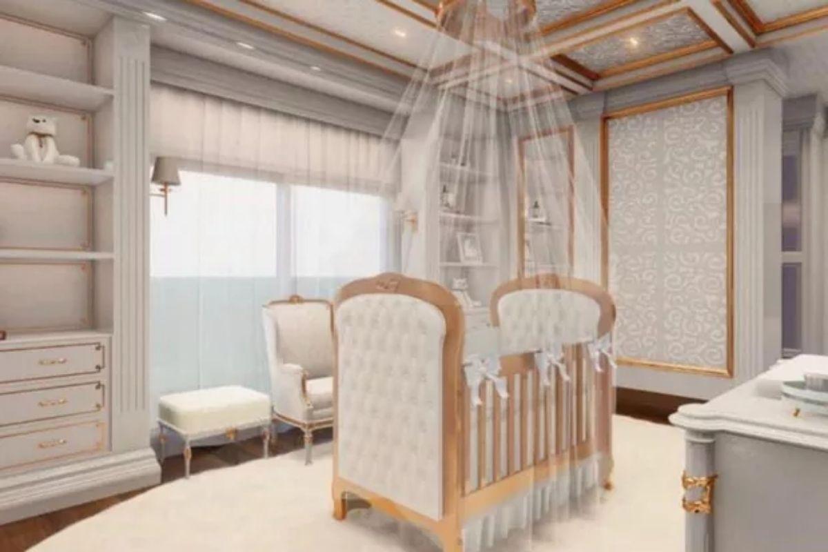 O quarto de João Miguel vai contar com uma decoração com as cores branco e cinza, além de tons de dourado e madeira fria. Na foto publicada pela mãe, é possível ver alguns detalhes do projeto, como o berço, que ficará no centro do quarto.