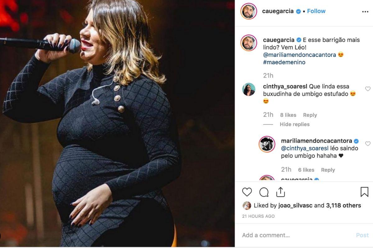À espera do primeiro filho, Marília Mendonça chamou atenção dos seguidores após amigo da cantora publicar uma foto em sua conta do Instagram.