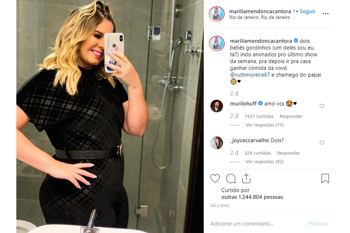 Mas na hora de escrever a legenda, ela acabou confundindo os seguidores: “Dois bebês gordinhos indo animados pro último show da semana, pra depois ir pra casa ganhar comida da vovó e chamego do papai”. “São dois bebês?”, perguntou uma seguidora.