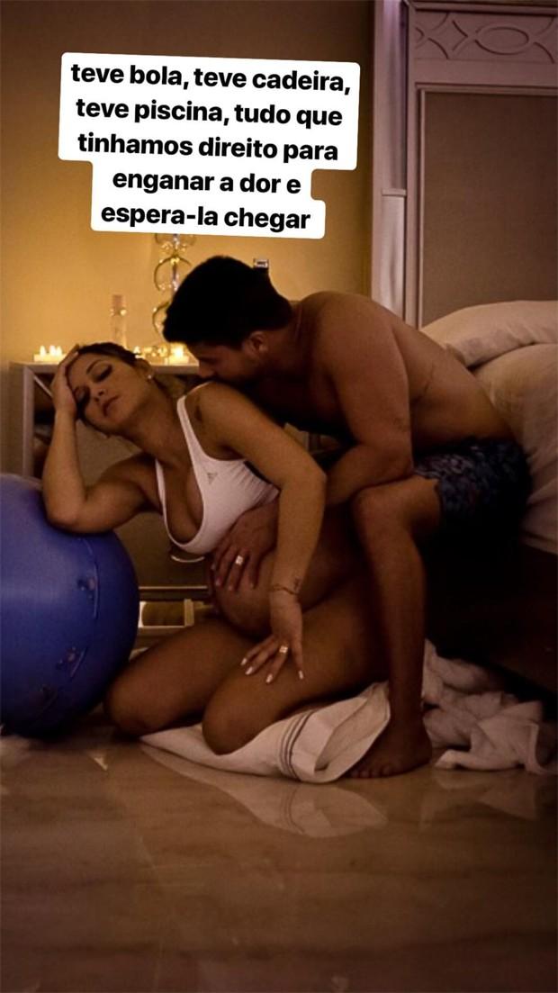 “Arthur foi o melhor companheiro da vida nas dores. Estávamos esgotados dias e noites esperando pela Sophia. Teve bola, teve cadeira, teve piscina, tudo o que tínhamos direito para enganar a dor e esperá-la chegar. Eles queriam que eu comesse porque já faziam horas e horas sem comer e dias sem dormir. Realmente o parto não se explica, só se sente e se vive. E o papai pediu muito para eu sair e ajudar a mamãe que estava muito cansada. A bolsa já tinha estourado, Sophia monitorada pela Márcia e pela Flavia que estavam conosco todo o tempo”, falou na série de stories que publicou.