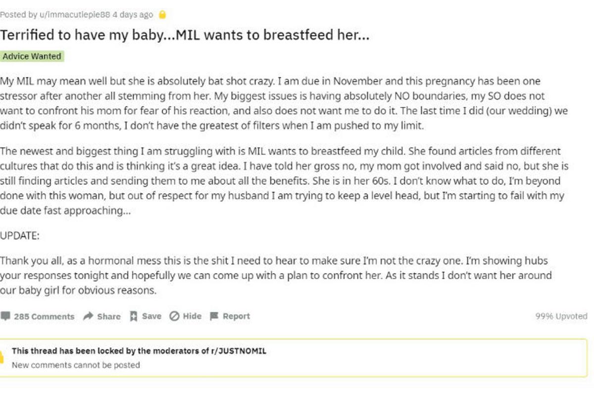 A chegada de um filho é muito especial para todos mas, as vezes, certos membros da família, não respeitam os limites! Foi o que aconteceu com uma grávida. Ela está na reta final da gravidez e a sogra quer amamentar o filho dela! Por isso, a mulher fez um desabafo nas redes sociais.