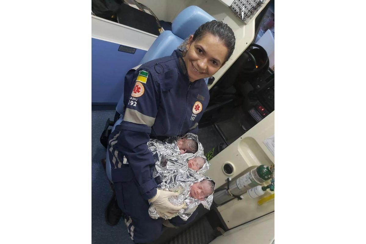 “Foi uma surpresa para eles, pois esperavam dois bebês e felizmente mesmo em toda essa situação os três nasceram bem, corados, chorando muito e nenhuma dificuldade durante o parto de um para o outro. Fico feliz de poder ter contribuído para a chegada desses meninos, pra mim é sempre uma felicidade participar do processo do parto e nascimento”, disse emocionada.