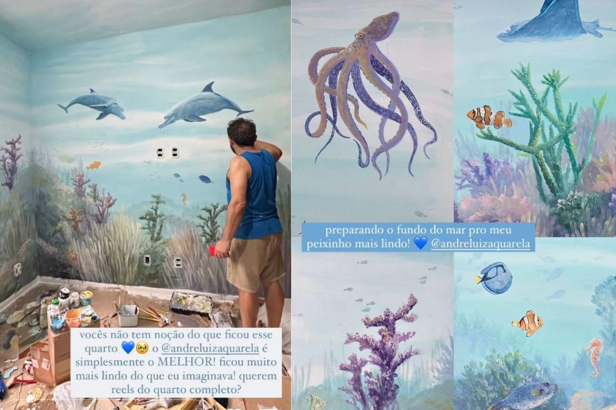 Nas imagens é possível ver que o quarto será temático do fundo do mar. Ela teve essa ideia por conta do nome do filho que significa a caminho do mar e vem do Havaí,Petra é filha do ator Maurício Mattar fruto de seu antigo relacionamento com a atriz Fabiana de Sá. ”Vocês não tem noção do que ficou esse quarto, o @andreluizaquarela é simplesmente o melhor! Ficou muito mais lindo do que eu imaginava! Querem reels do quarto completo?”, disse a futura mãe na legenda da publicação.