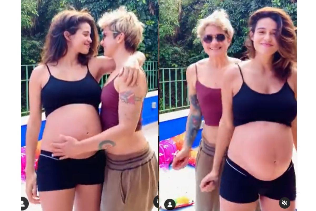“Muito linda grávida”, declara-se Lahn, no vídeo. Nanda aparece acariciando a barriga de 6 meses de gravidez e, sobre isso, a percursionista ainda completa, “Passando creminho nas meninas, já fez exercício de hoje”.