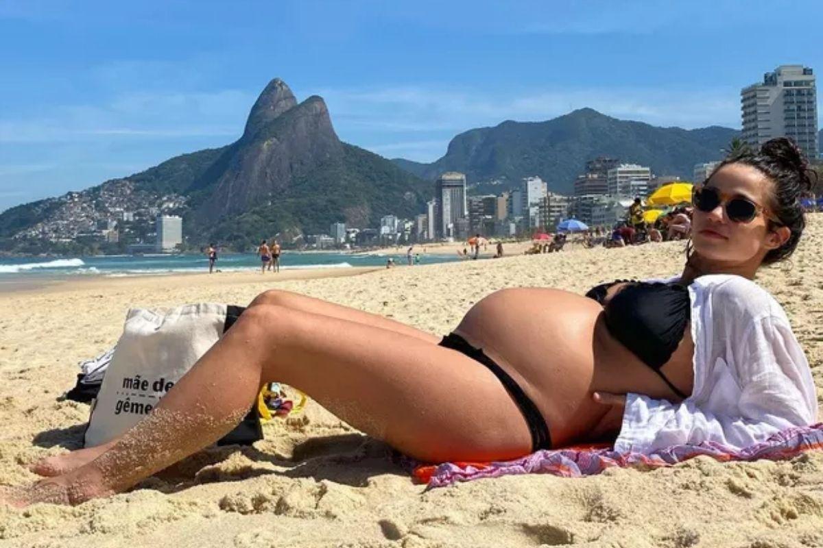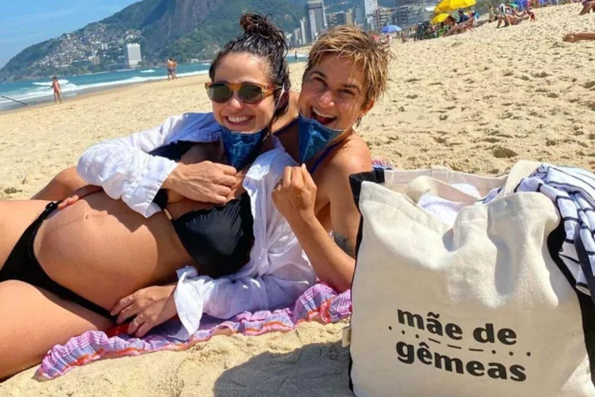 Nanda Costa e Lan Lanh aproveitaram o dia ensolarado na praia de Ipanema, no Rio de Janeiro, nesta terça-feira, dia 10 de agosto. A atriz está grávida de gêmeas por meio de fertilização in vitro e tem mostrado o aumento da barriga nas redes sociais.