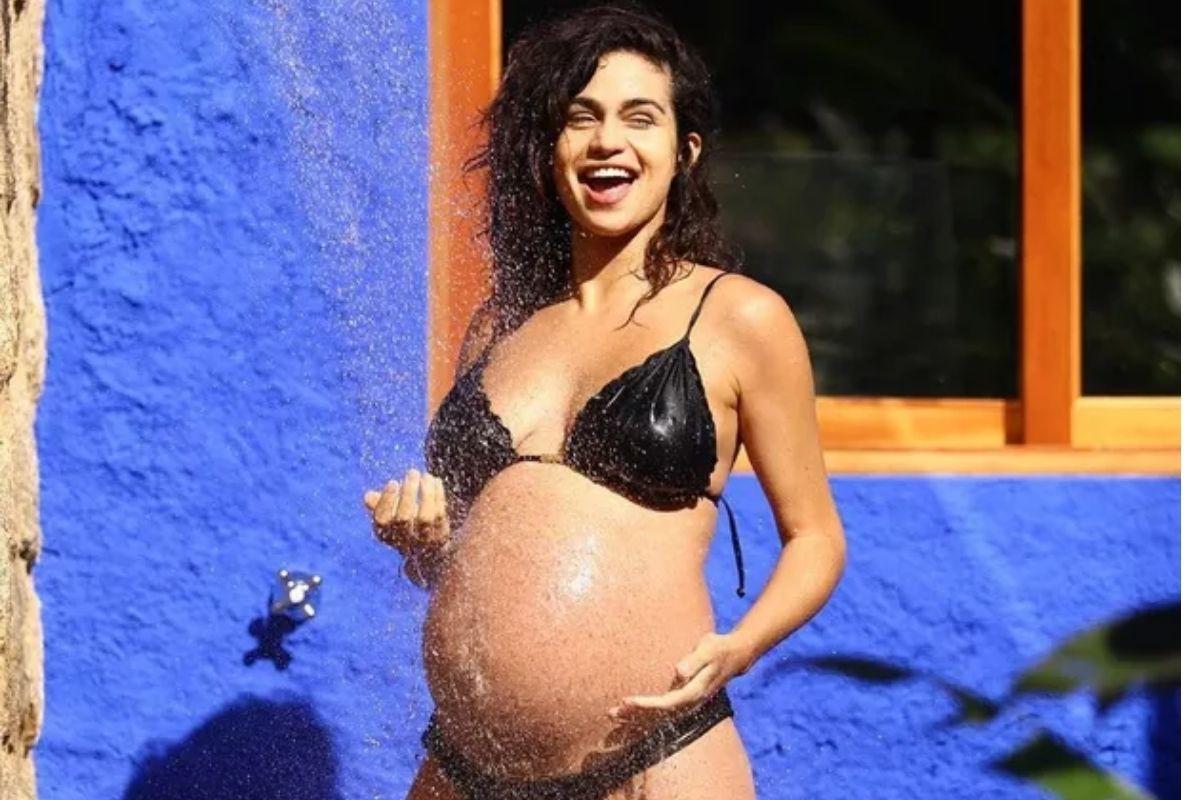 Nas imagens, compartilhadas nas redes sociais, Nanda toma uma ducha usando um biquíni preto e mostra a barriga de sete meses. “Quem vê cara, não vê corre”, legendou Nanda, que foi clicada sorrindo pela fotógrafa Luciana Serra.