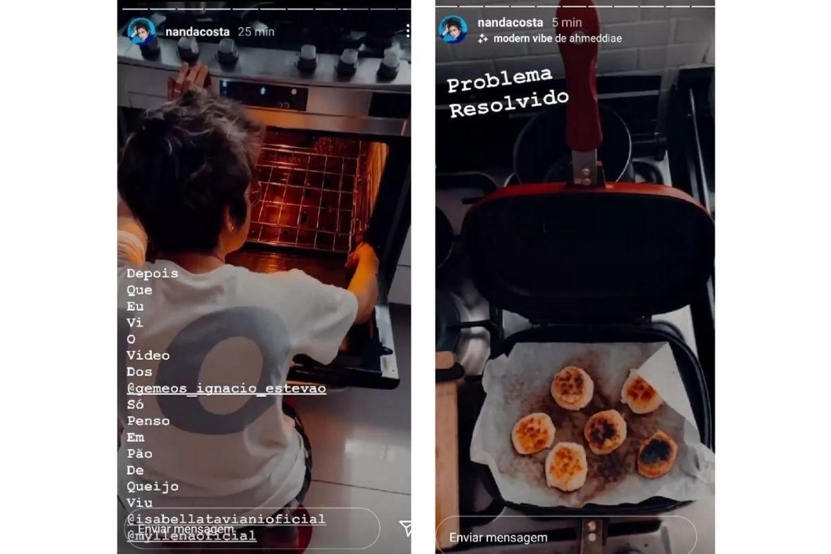O desejo surgiu depois que Nanda viu um vídeo em que um menino pede, sem parar, por pão de queijo à mãe. “Acordei com desejo”, ela conta. Depois de um tempo, ela voltou para atualizar os fãs: “Problema resolvido”, postou, já com os pães de queijo pontos e improvisados em uma sanduicheira no fogão mesmo.