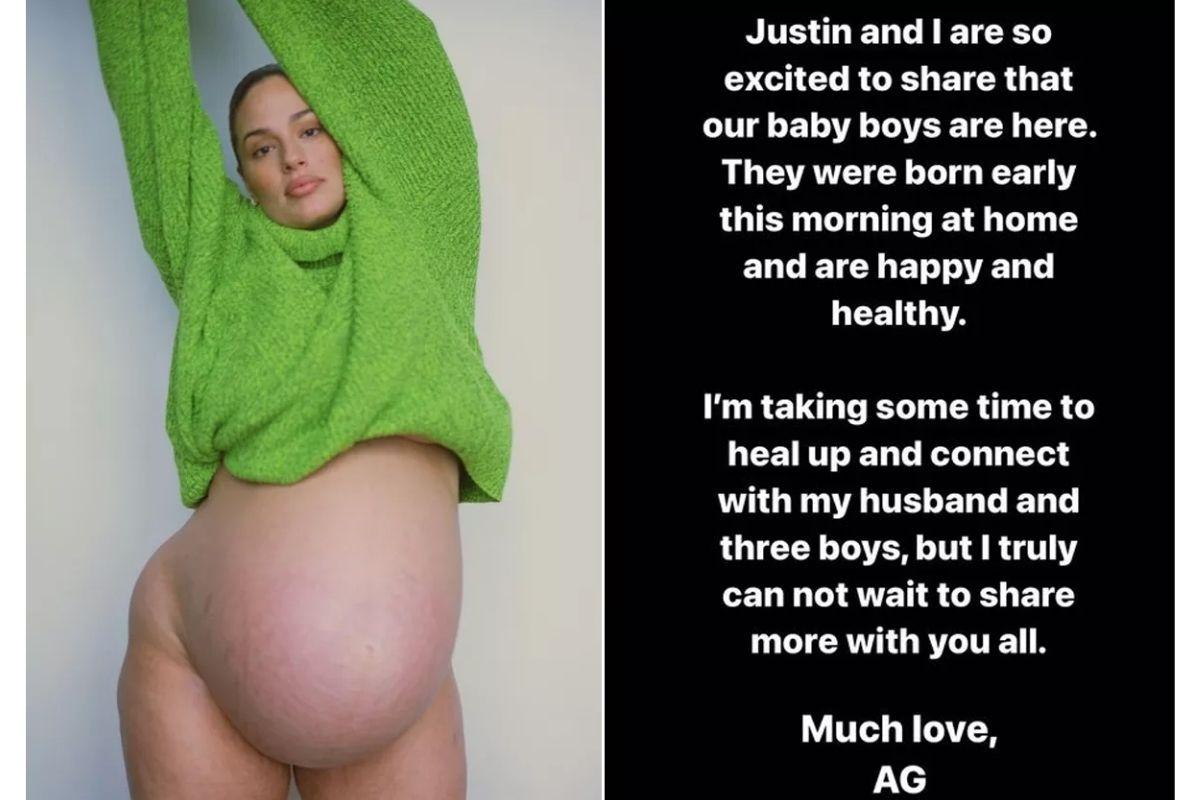 Momento de comemorar! Nesta sexta-feira, 7, a modelo Ashley Graham usou o Stories do Instagram para anunciar o nascimento dos filhos gêmeos, frutos do relacionamento com o diretor Justin Irwin.