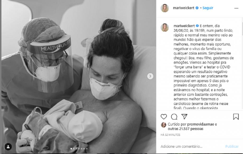 Mariana usou as redes sociais para contar sobre o nascimento do bebê (Foto: Reprodução / Instagram / @mariweickert)