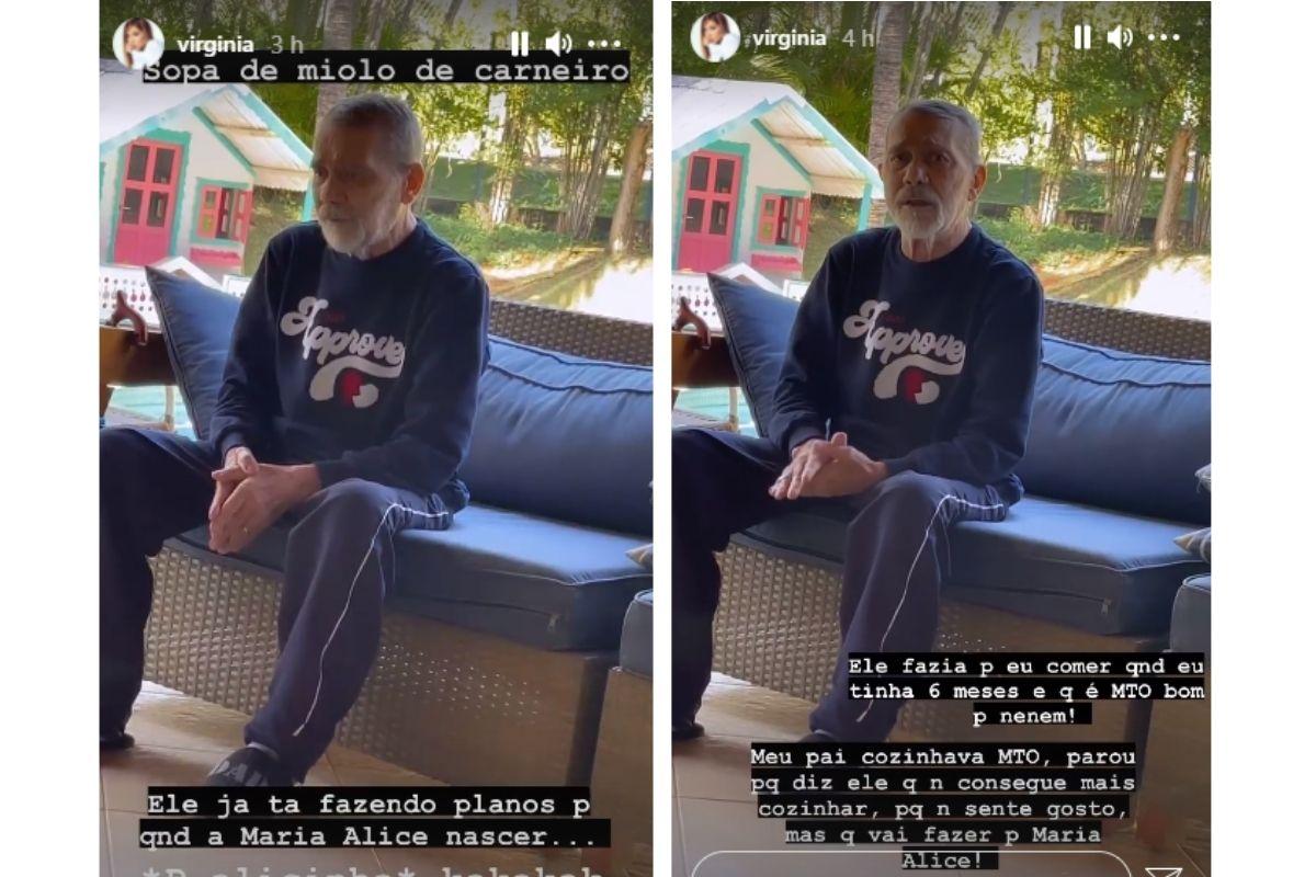 “Meu pai cozinhava muito. Parou porque diz ele que não consegue mais cozinhar, porque não sente gosto, mas que vai fazer para Maria Alice!”, continuou ela, explicando. No vídeo, o pai fala um pouco sobre os planos de preparar a refeição e, no meio da fala, solta o apelido carinhoso que já criou para a neta: “Alicinha”.
