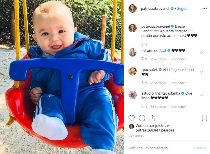 “E esse Senor? Aguenta coração!! É paixão que não acaba mais!”, declarou Patrícia na legenda da publicação. Senor é o terceiro filho de Patrícia Abravanel. A apresentadora também é mãe de Pedro e Jane. As três crianças são frutos do casamento de Patrícia Abravanel com Fábio Faria.