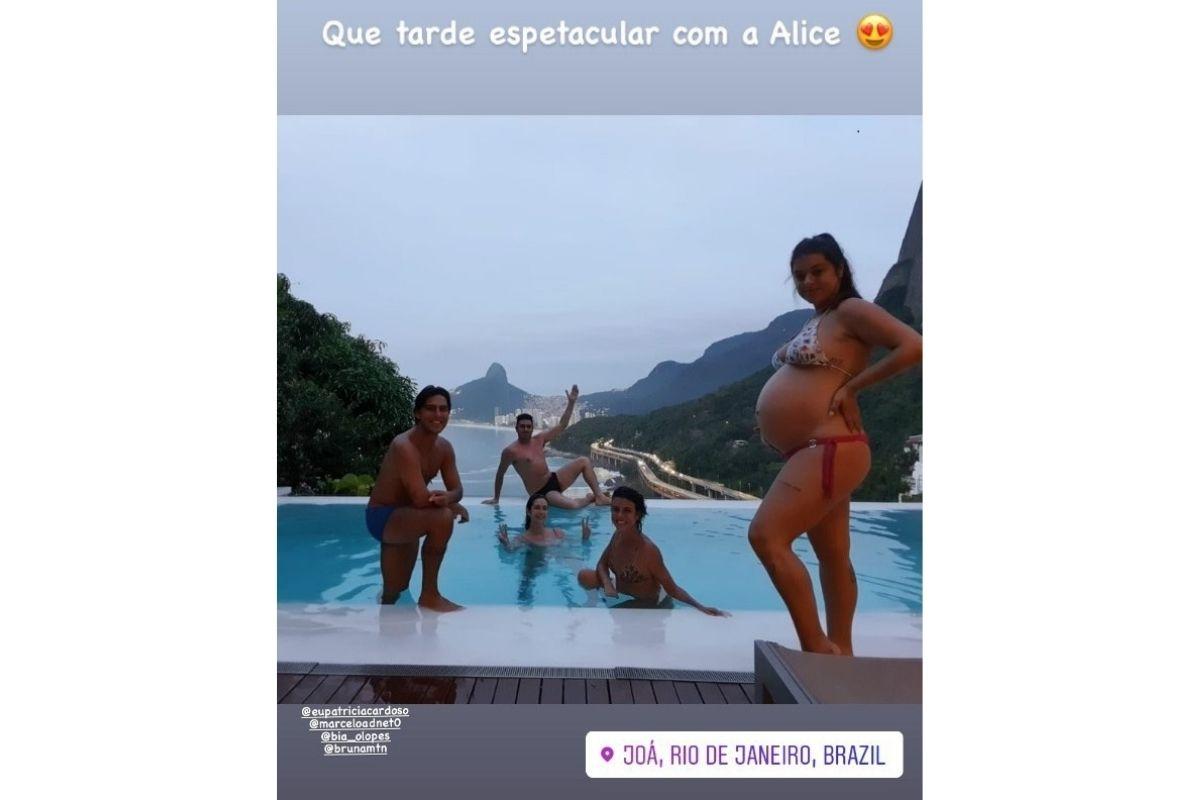 No último sábado, 14 de novembro, Patrícia Cardoso, grávida de 9 meses da primeira filha, Alice, com Marcelo Adnet, compartilhou nas redes sociais foto de biquíni, deixando em evidência o tamanho da barriga. Ela aproveitou o sábado de calor da melhor forma possível, cercada de amigos.