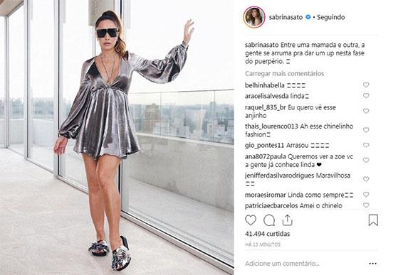 Na madrugada da última terça-feira (11), o diretor de moda da revista Vogue, Pedro Sales, compartilhou mais uma foto que fez parte do ensaio. Nela, Sabrina aparece com blusa e calça jeans mostrando uma boa forma após a gestação. “Tá mais gata do que nunca! Impressionante!”, escreveu o diretor. Outros internautas também ficaram em choque ao ver a imagem: “Essa mulher não existe”.