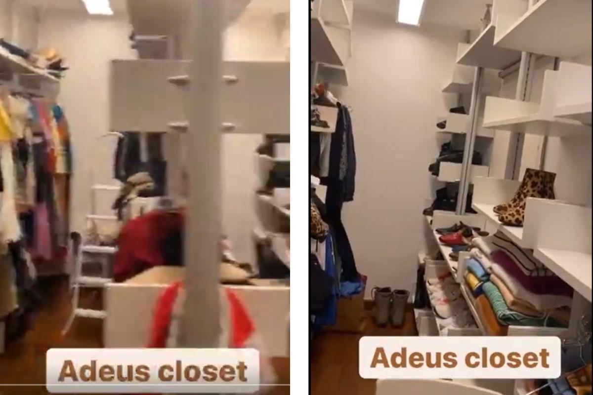 “Estou desfazendo o meu closet. Olha o tamanho que ele é. Pra vocês terem uma ideia, isso vai virar um quartinho de bebê, um banheiro de bebê. E meu closet vou colocar lá pra trás da casa”, disse ela, ao mostrar o espaço, ainda com as roupas.