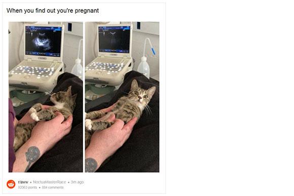 Ulla, uma gatinha resgatada das ruas de Nuuk, na Groenlândia, teve a melhor expressão durante um ultrassom para ver seus bebês e a foto bombou na internet após uma mulher publicar com a legenda: “Quando você descobre que está grávida“. É claro que a reação do animal não foi proposital, mas a gente amou.
