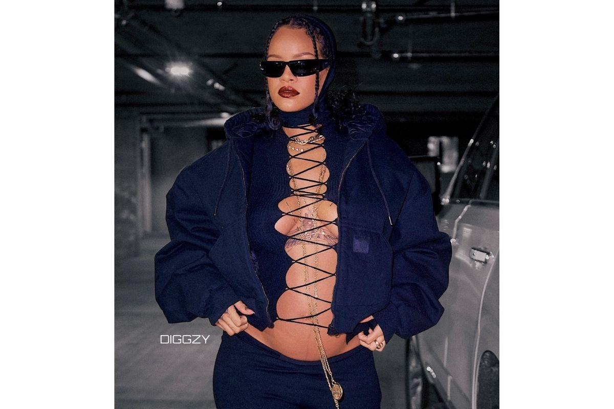 Nesta segunda-feira, 07 de fevereiro, Rihanna apareceu com o barrigão à mostra pela primeira vez em um estacionamento após o anúncio da gravidez.