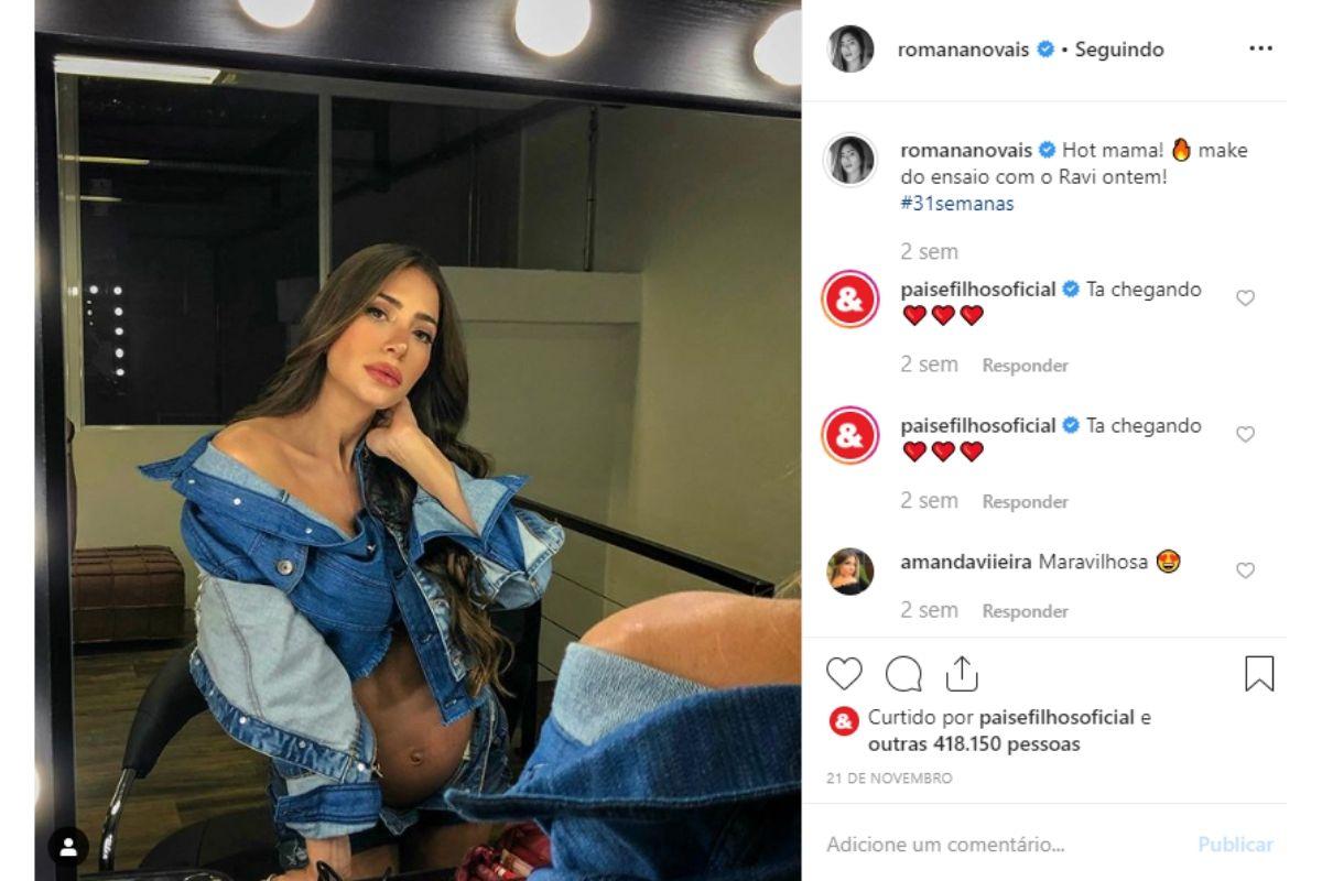 Agora, Romana mostrou uma parte do resultado do ensaio e provou que cumpriu a promessa de um ensaio de gestante com uma pegada mais diferente. “Ser mulher é ser muitas e todas. E ao mesmo tempo ser eu! Primeira foto do ensaio dirigido pela fotógrafa @maririghez com produção da @talitaaribeiro e beleza do @leonardobba. Foi divertido sair do convencional e me transformar em uma versão mama diferente!”, disse ela.