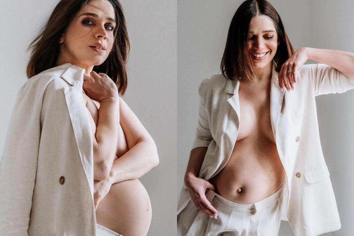 Na imagem, Sabrina aparece segurando um blazer e deixando sua barriga aparecer. Na legenda, ela escreveu: “Barriga a vista! Nessa terceira gestação, com o abdômen mais flexível, minha barriga despontou logo de cara. Quem aí consegue adivinhar o sexo do bebê pelo formato?”.