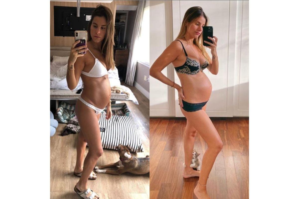 Casada com Matheus Vedelho, os dois estão grávidos pela segunda vez durante a pandemia. Na montagem ela escreveu: “Atendendo a pedidos, eu com 23 semanas de gestação do Pippo e agora com 23 semanas…”.