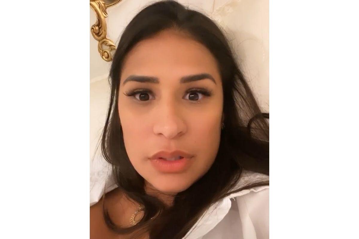 “Tô numa preguiça tão grande. Só levantei porque estava com a bexiga para estourar. Quem está grávida ou já teve bebê sabe como a gente fica, a gente fica com a bexiga cheia, parece que vai estourar. Agora preciso de coragem para tomar banho“, contou ela, ainda na cama.