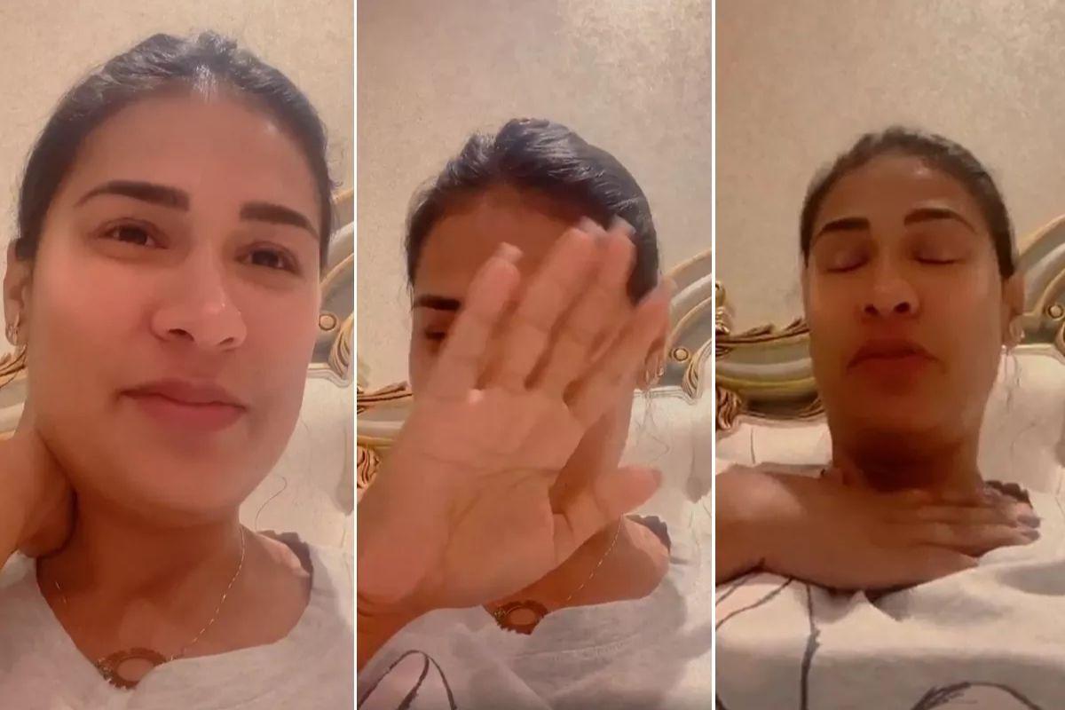 “Quero contar para vocês, minha barriga está parecendo de uma mulher grávida de 5 meses. Nunca vi um negócio desse. Nunca vi uma barriga crescer tanto na minha vida igual à minha”, explicou. Em seguida, ela comentou sobre o tamanho dos seios: “Olha para cá, olha o tamanho das ‘peitcholas’. Imagina daqui a pouco o tamanho que não vai estar”.