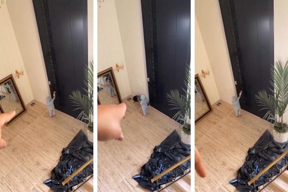 a cantora Simone, da dupla com Simaria, caiu na risada ao mostrar o filho, Henry, tentando abrir a porta gigante e falhando. Nas imagens também é possível ver as lonas da reforma que a cantora decidiu fazer na mansão, que fica em um condomínio de luxo em São Paulo.