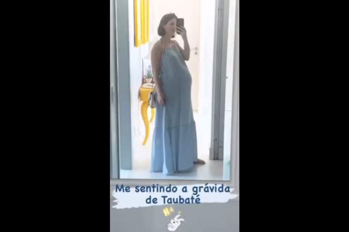 “Me sentindo a grávida de Taubaté”, brincou a Sthefany. A “grávida de Taubaté” gerou repercussão em 2012. Maria Verônica Aparecida César Santos, da cidade de Taubaté (SP), afirmava estar grávida de quadrigêmeos e circulava com uma enorme barriga de grávida. No entanto, a gravidez era um invenção e a farsa só foi descoberta quando a mulher passou mal de madrugada e se recusou a ser examinada por um médico, então foi descoberto que na verdade usava uma barriga falsa.