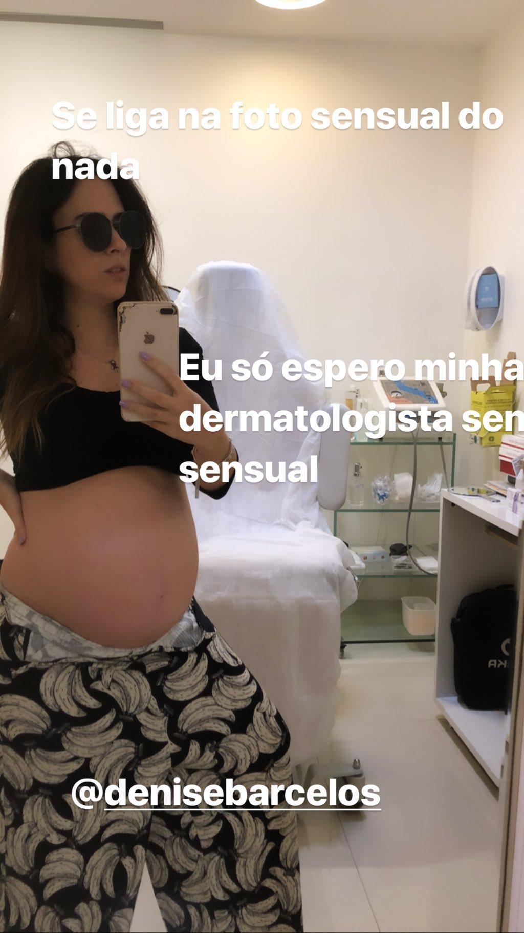 Tatá Werneck está cada dia mais animada e ansiosa para a chegada da filha. Na quinta-feira, 8 de agosto, a atriz foi aos stories do Instagram para mostrar aos seguidores sua consulta no dermatologista. Enquanto esperava para ser atendida, Tatá filmou sua barriga e não conseguiu evitar os comentários engraçados.