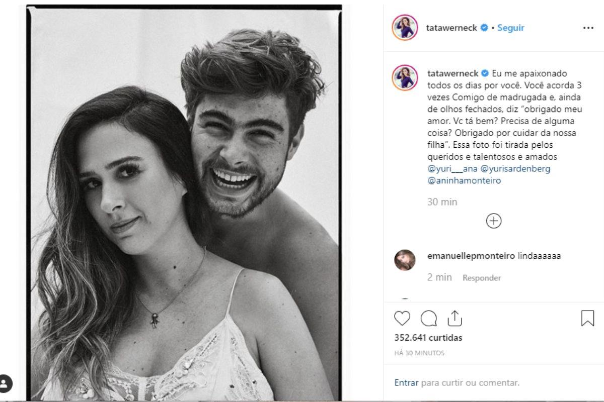 Faltando poucas semanas para o nascimento da sua primeira filha, Tata Werneck publicou nesta segunda-feira, 9 de agosto para fazer uma homenagem a Rafael Vitti.
